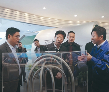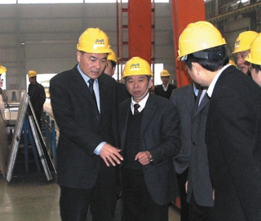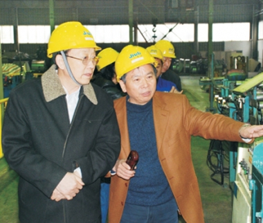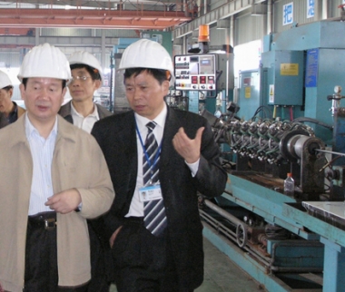 2007年2月,時任浙江省原副省長金德水(左二)視察久立生產(chǎn)現(xiàn)場